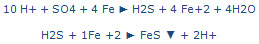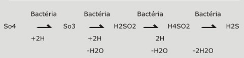 O Desulfovibrio desulfuricans, causador de corrosão industrial, produz H2S a partir de sulfatos e íons de ferro existentes na agua e, posteriormente, produz o Sulfeto de Ferro (FeS):